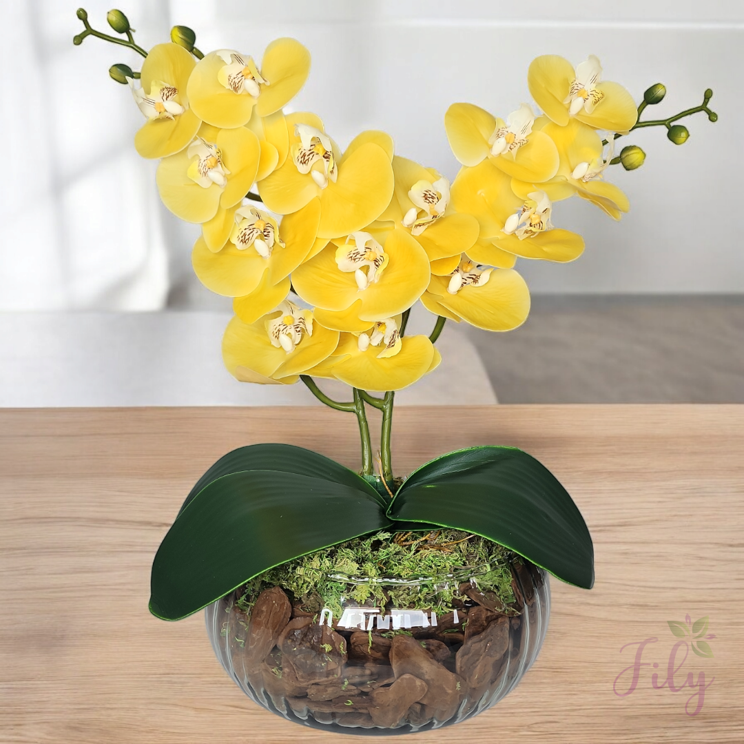 Escolha nosso arranjo de orquídeas artificiais para adicionar um toque de elegância e exotismo aos seus espaços, criando ambientes florais encantadores sem a necessidade de manutenção constante. Ideal para quem busca praticidade e beleza duradoura na decoração.