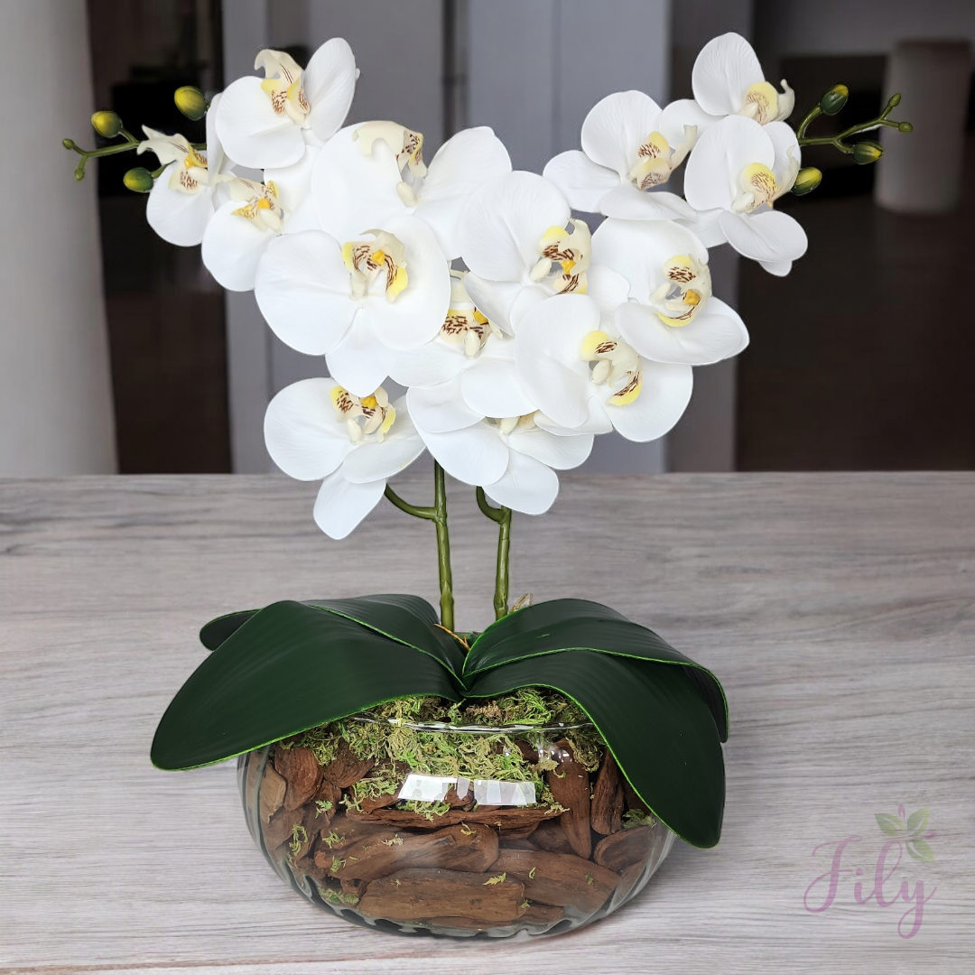 Escolha nosso arranjo de orquídeas artificiais para adicionar um toque de elegância e exotismo aos seus espaços, criando ambientes florais encantadores sem a necessidade de manutenção constante. Ideal para quem busca praticidade e beleza duradoura na decoração.