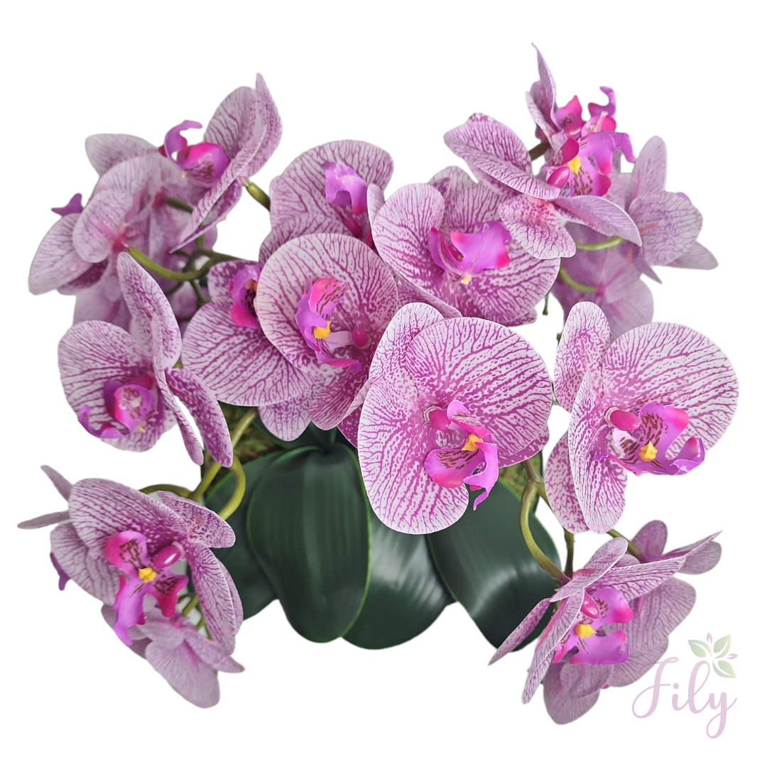 Escolha nosso arranjo de orquídeas artificiais para adicionar um toque de elegância e exotismo aos seus espaços, criando ambientes florais encantadores sem a necessidade de manutenção constante. Ideal para quem busca praticidade e beleza duradoura na decoração.
