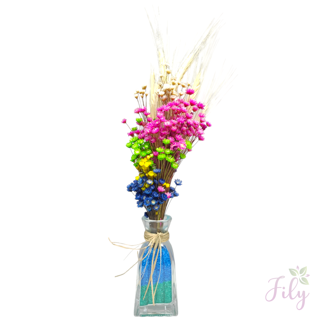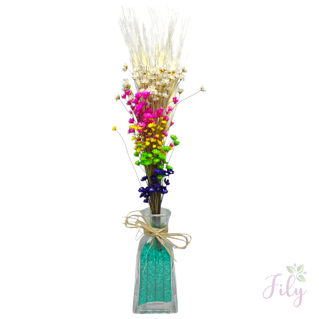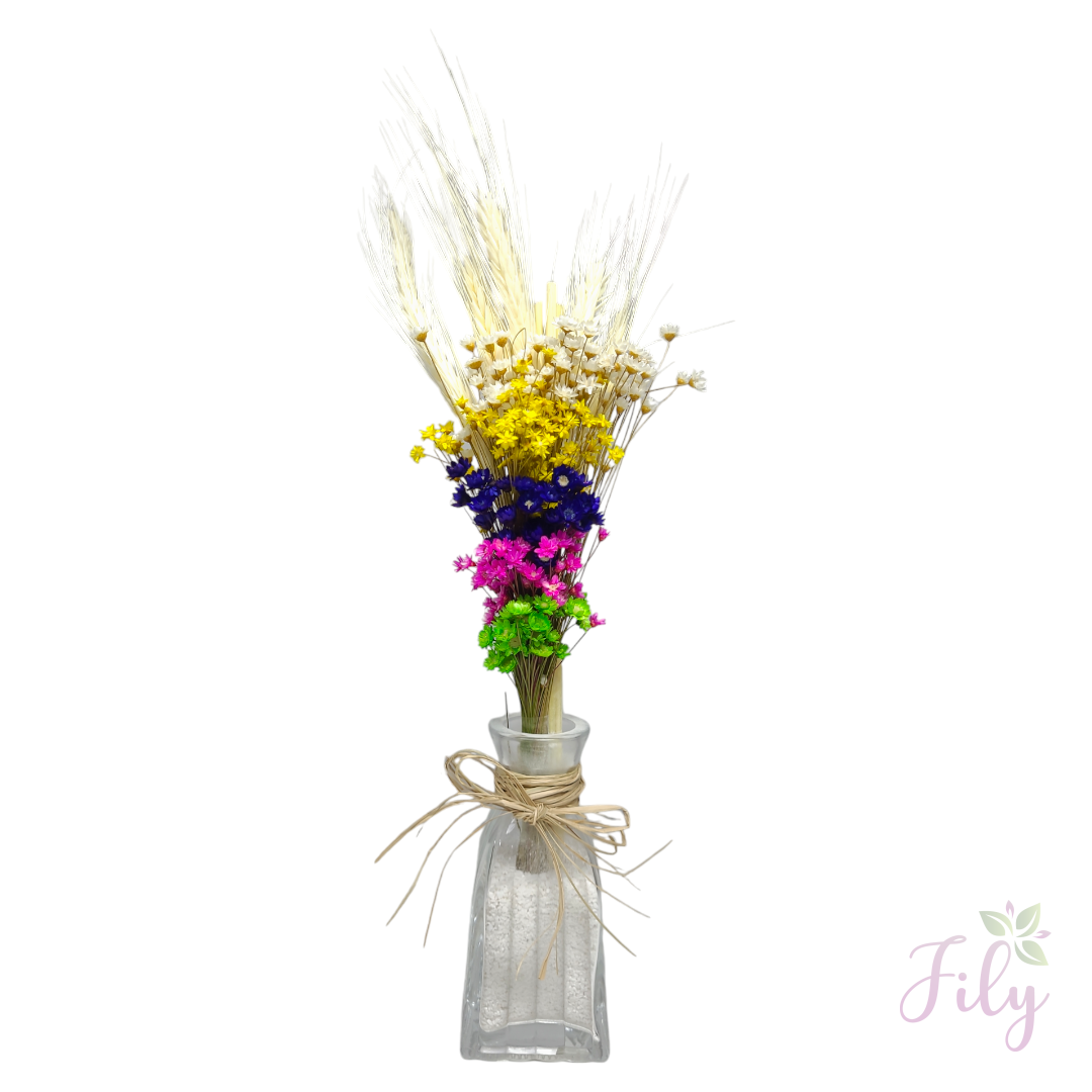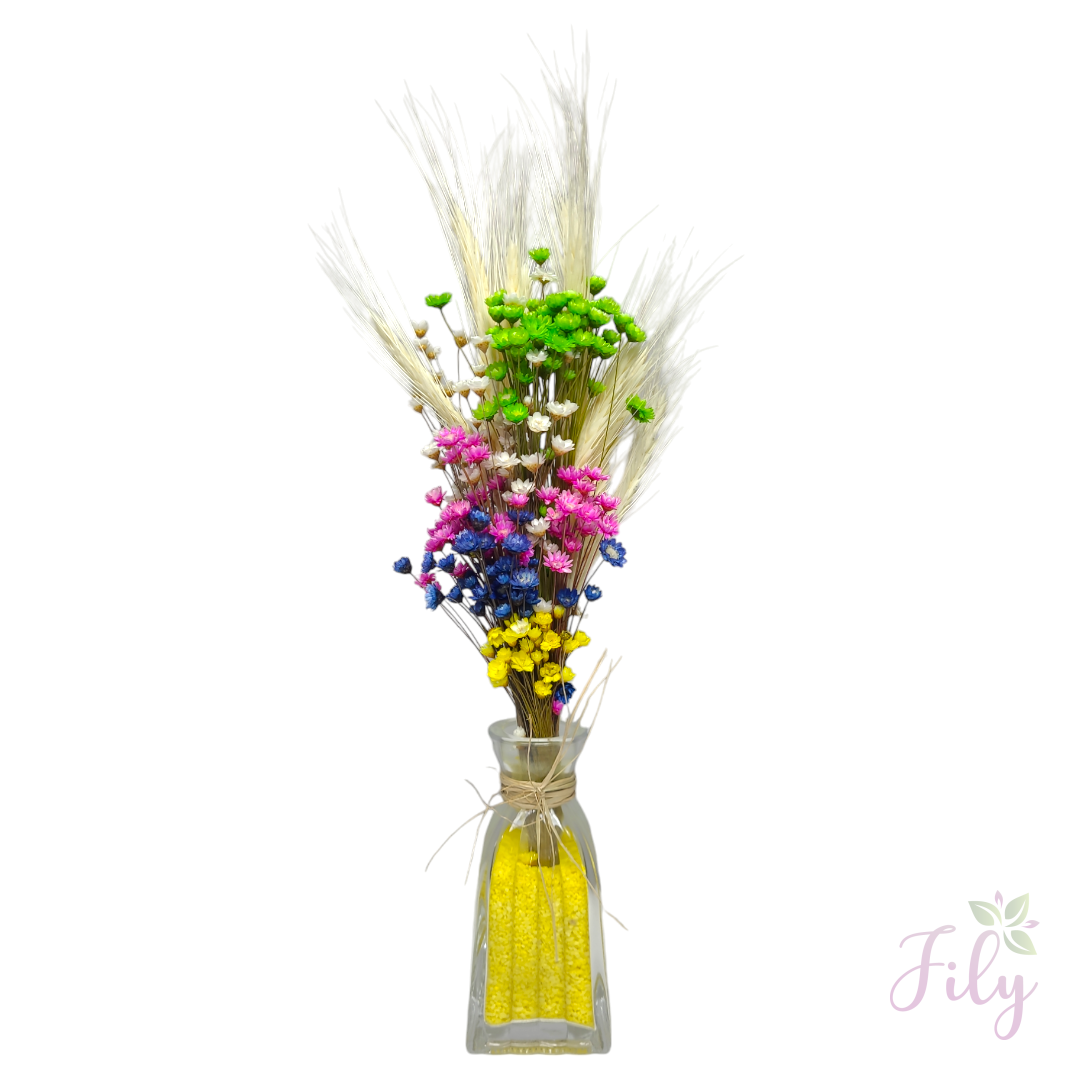 Nosso arranjo de macinho sortido* (também conhecido como mosquitinho) é a escolha ideal para adicionar um toque de leveza e charme a qualquer ambiente. Com seu visual delicado e natural, este arranjo é perfeito para complementar diversos estilos de decoração sem a necessidade de cuidados constantes.