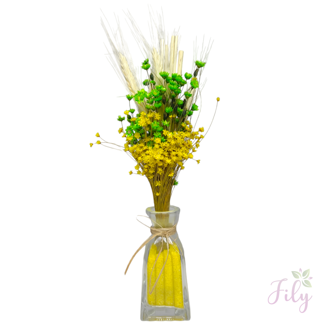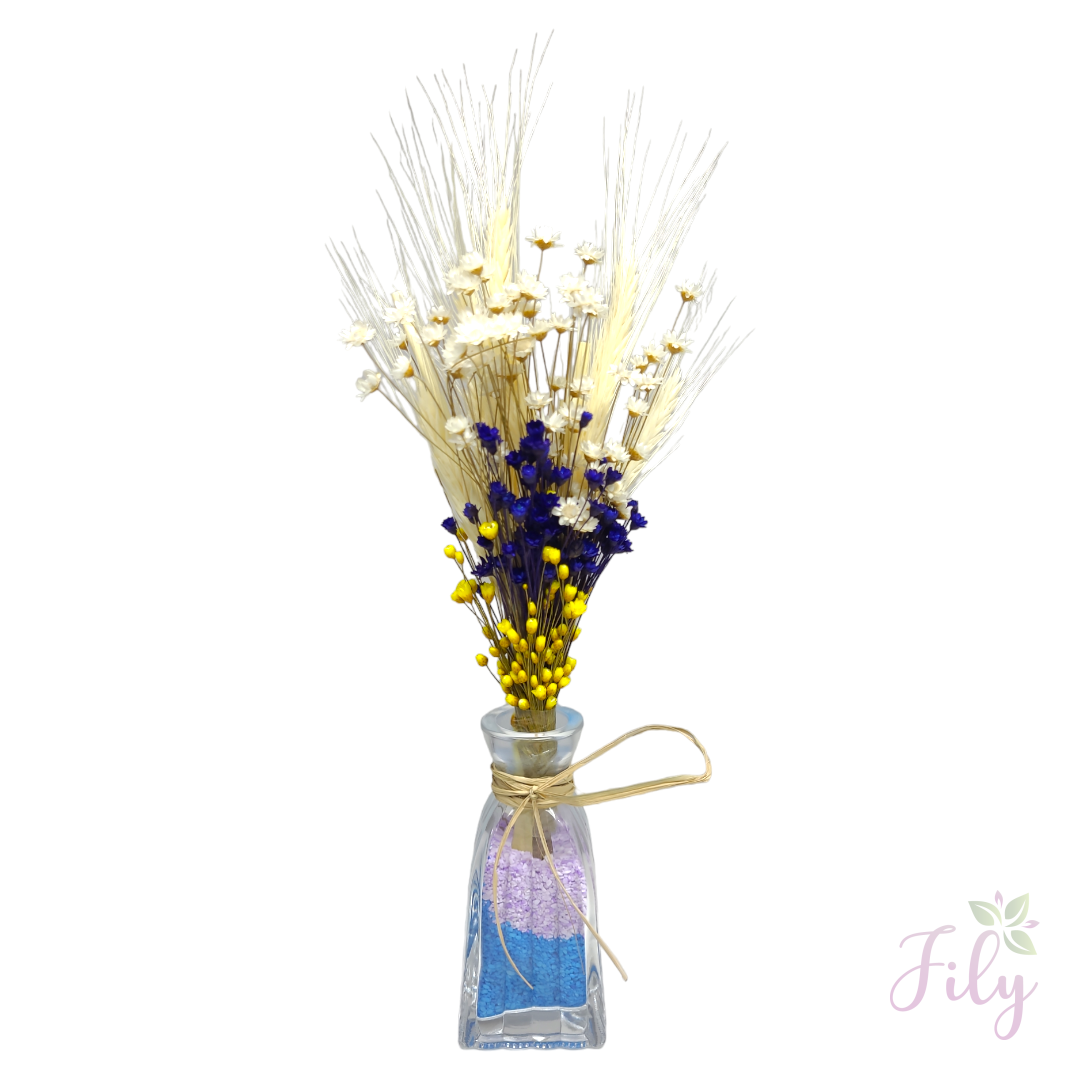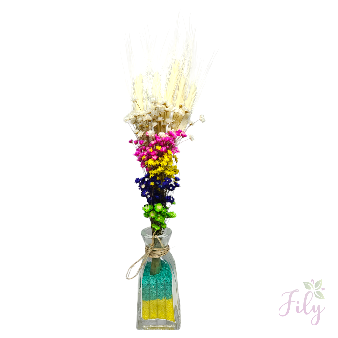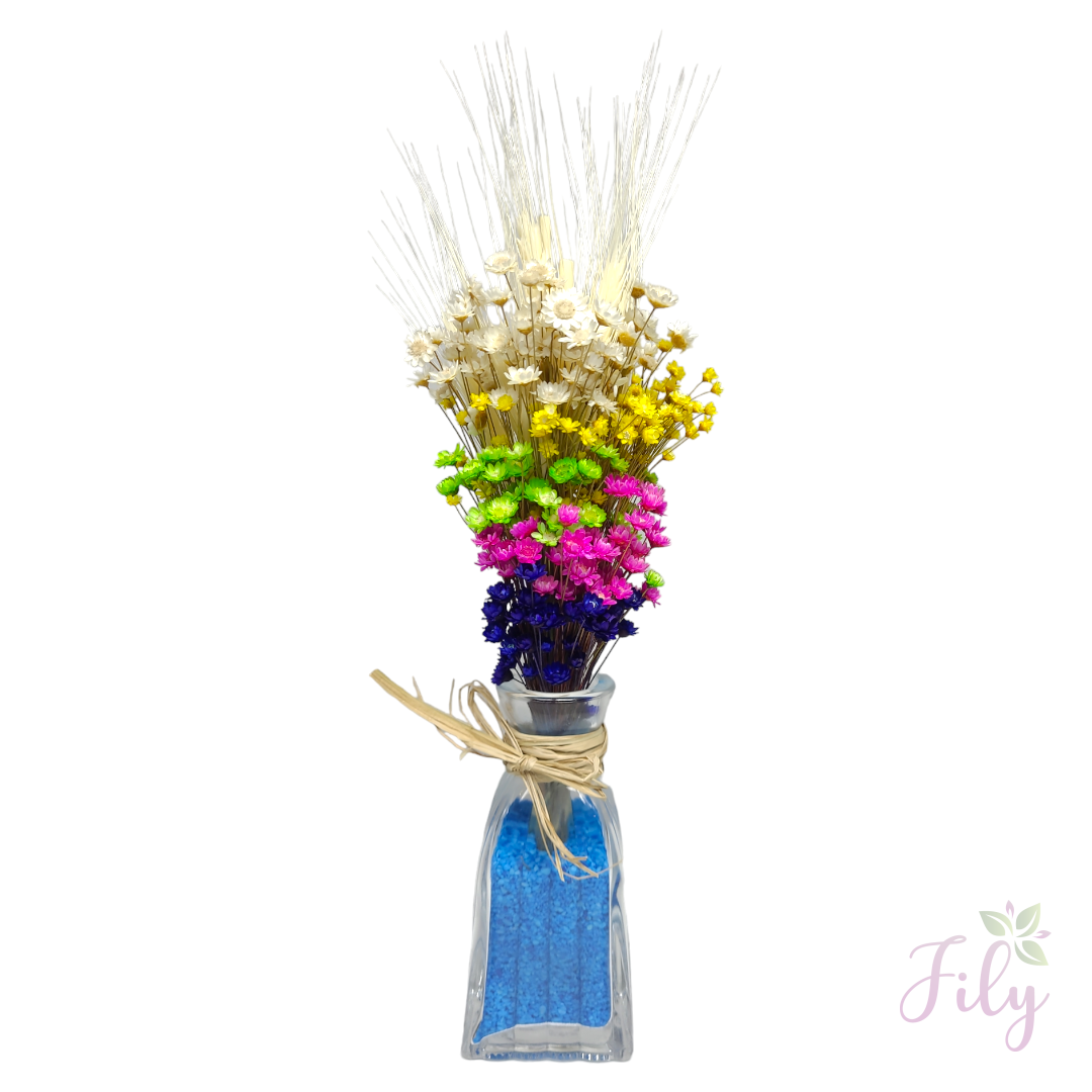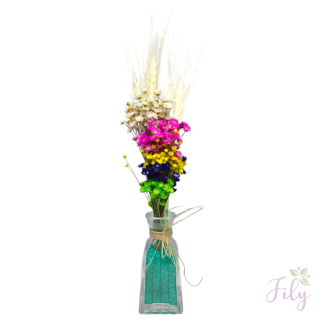Nosso arranjo de macinho sortido* (também conhecido como mosquitinho) é a escolha ideal para adicionar um toque de leveza e charme a qualquer ambiente. Com seu visual delicado e natural, este arranjo é perfeito para complementar diversos estilos de decoração sem a necessidade de cuidados constantes.