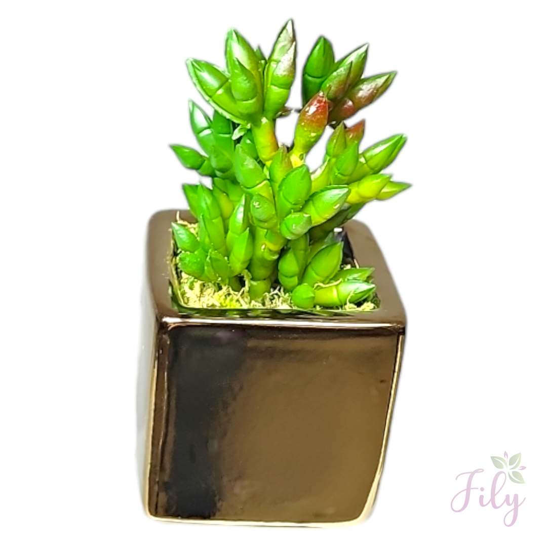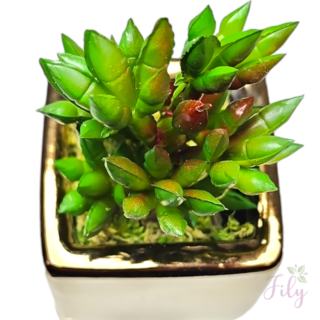 Arranjo de Suculenta modelo 3 com vaso cerâmica dourado quadrado