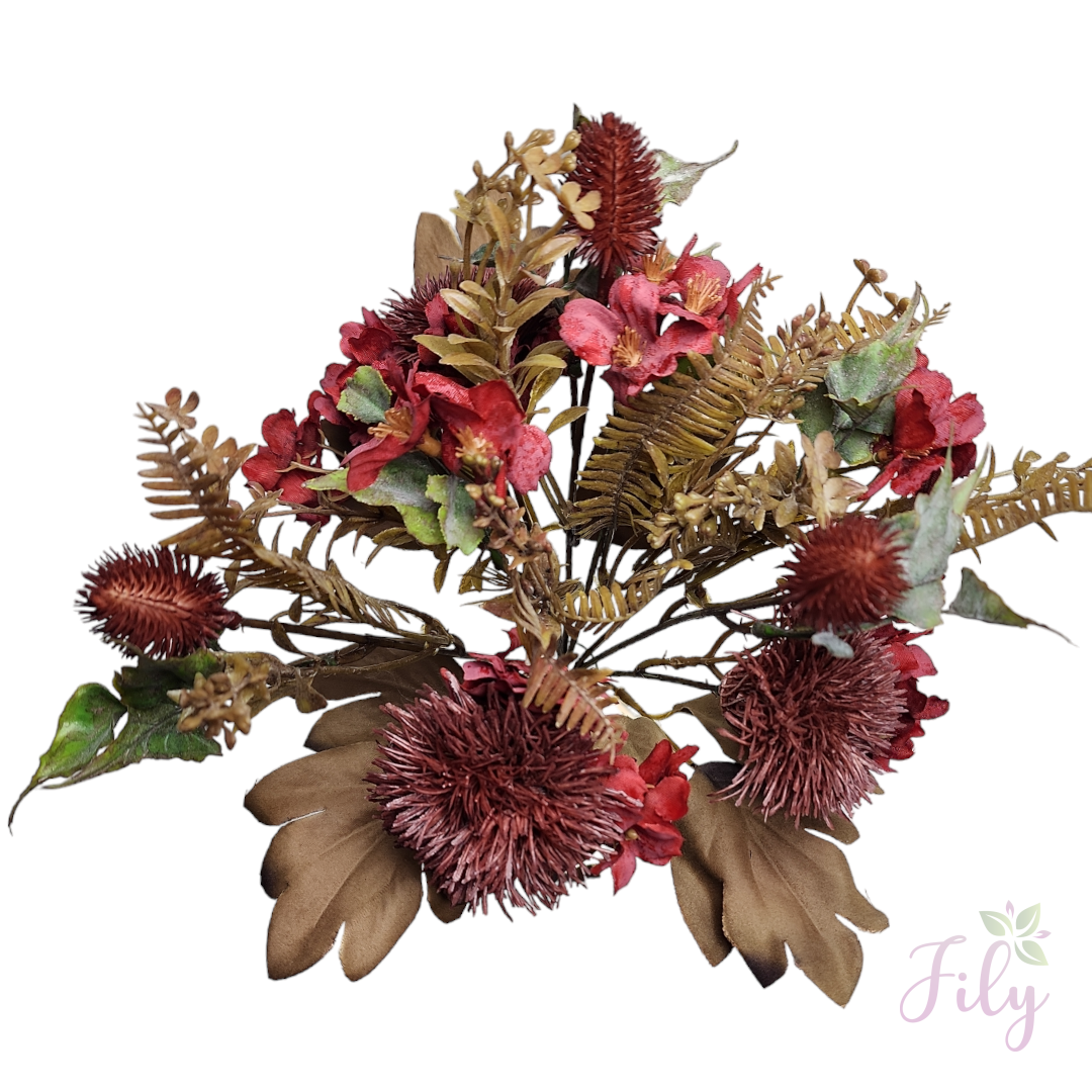 Buque Mix Ramalhete com fita x3 hastes Marsala A 44cm x L 22cm