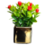 Vaso dourado cerâmica quadrado com verdinho e flor vermelha